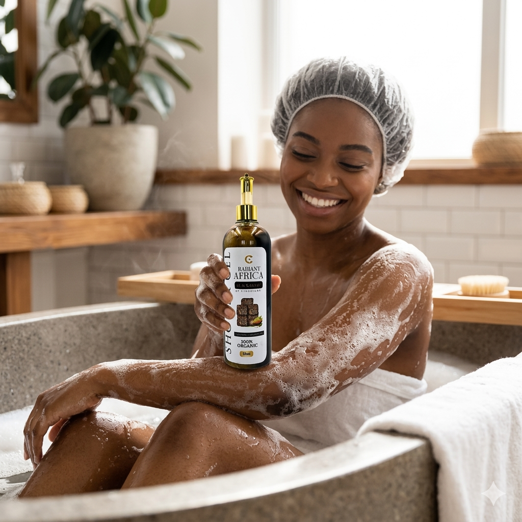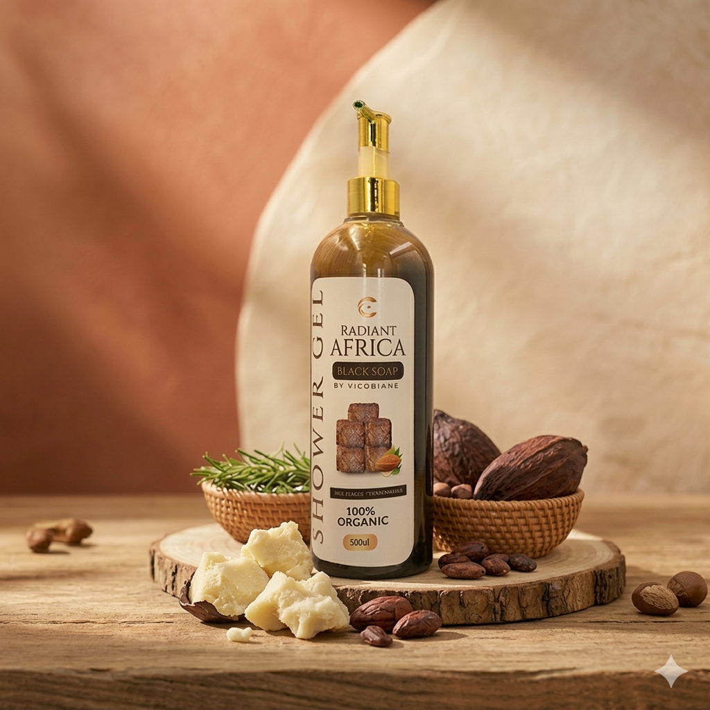 Experience the power of authentic Ghanaian black soap in a convenient, modern shower gel form. Our Radiant Africa Black Soap Shower Gel combines traditional wisdom with contemporary ease.